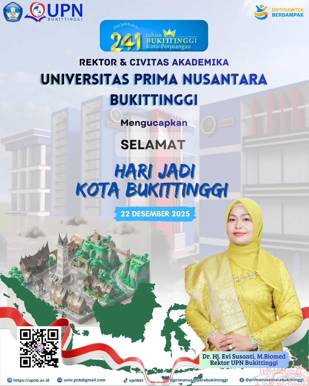Rektor & Civitas Akademika Universitas Prima Nusantara Bukittinggi Mengucapkan Selamat Hari Jadi Kota Bukittinggi ke-241.